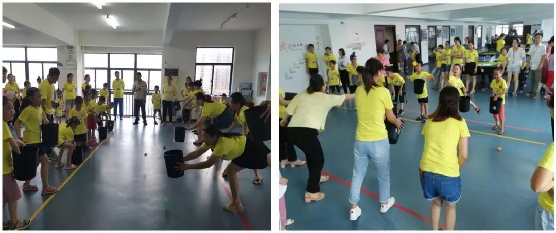 隨后,活動在一場歡快的“兔子舞”中拉開了序幕,本次活動設置了 “過河拆橋”、“無敵風火輪”、“投籃高手”等系列趣味小游戲。在活動中,家長和孩子們密切配合,整個現場處處洋溢著家長和孩子們的歡聲笑語,全員為孩子們加油喝彩,助威鼓勁,活動中最別具一格的游戲是“無敵風火輪”,由于擋住了前方視線,孩子要有基本的方向意識,游戲有一定的難度,在旁觀看的爸爸媽媽們即是激動又是緊張,在爸爸媽媽們的幫助和指導下孩子們順利完成游戲任務,最后家長們也積極興奮的PK挑戰(zhàn),體驗孩子們的樂趣、童真。